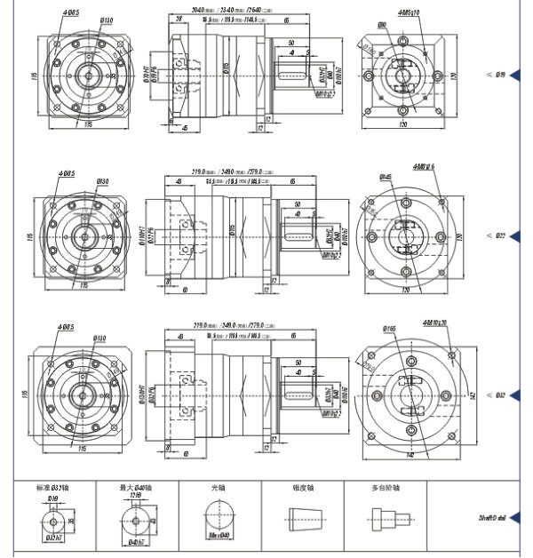●配電機尺寸:電機不同,與之匹配的尺寸將有所變化,適配器將不同。本公司減速機能與任何電機匹配安裝。